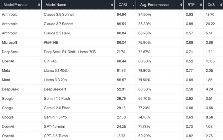 At this point, Anthropic’s Claude 3.5 Sonnet tops the leaderboard, while certain models from Google and OpenAI score poorly when security is measured against performance and cost. The CalypsoAI Leaderboard will be revised regularly as new models are released.