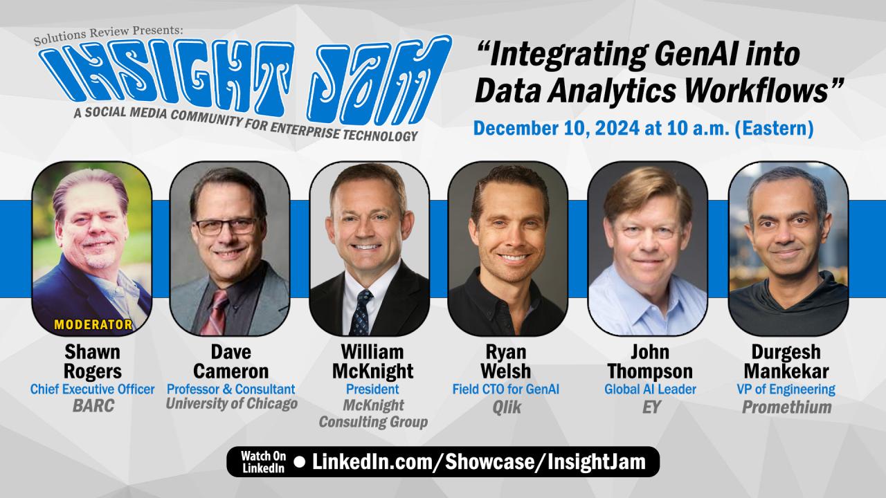 The post What to Expect at the 6th Annual Insight Jam LIVE!: Strategies for AI Impact December 10-13 appeared first on Best Data Integration Vendors, News & Reviews for Big Data, Applications, ETL and Hadoop.