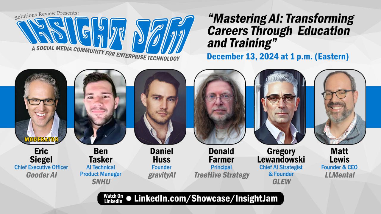 What to Expect at the 6th Annual Insight Jam LIVE!: Strategies for AI Impact December 10-13 https://solutionsreview.com/what-to-expect-at-the-6th-annual-insight-jam-live-strategies-for-ai-impact-december-10-13/ Tue, 03 Dec 2024 17:38:58 +0000 https://solutionsreview.com/data-integration/what-to-expect-at-the-6th-annual-insight-jam-live-strategies-for-ai-impact-december-10-13-3/ What to expect at the 6th annual Insight Jam LIVE!: Strategies for AI Impact with Over 25 Sessions, December 10-13 on InsightJam.com. The 6th Annual Insight Jam LIVE! is the original celebration of enterprise tech and a 4-day virtual event dedicated to equipping builders, implementers, and experts with actionable strategies for maximizing AI’s impact across […]