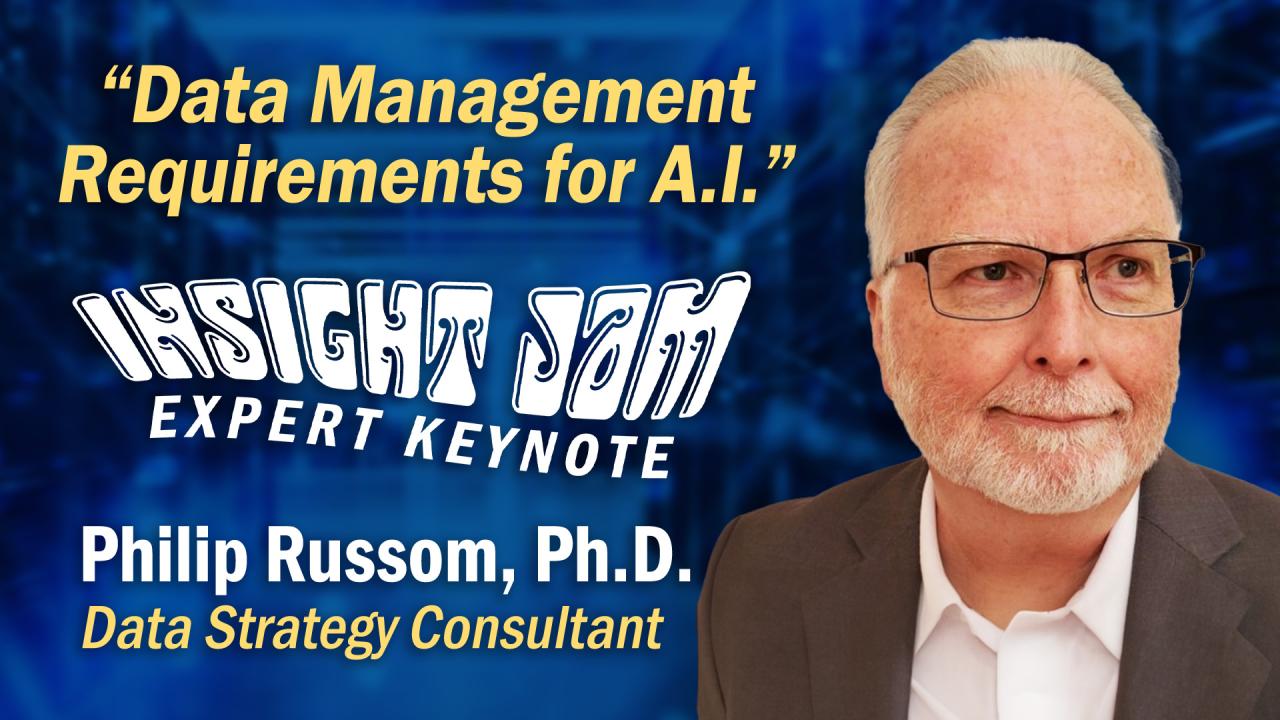 11:30 AM Keynote: Data Management Requirements for AI featuring Independent Industry Analyst Philip Russom, Ph.D.